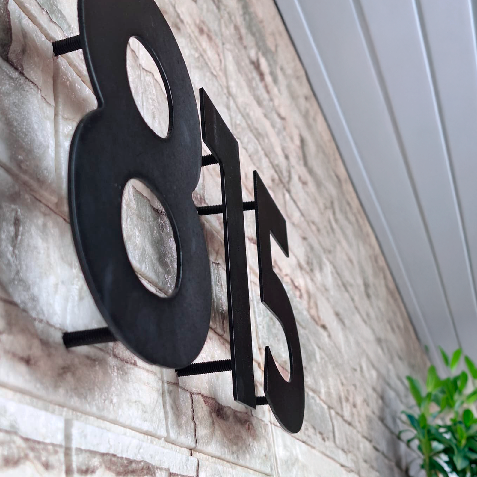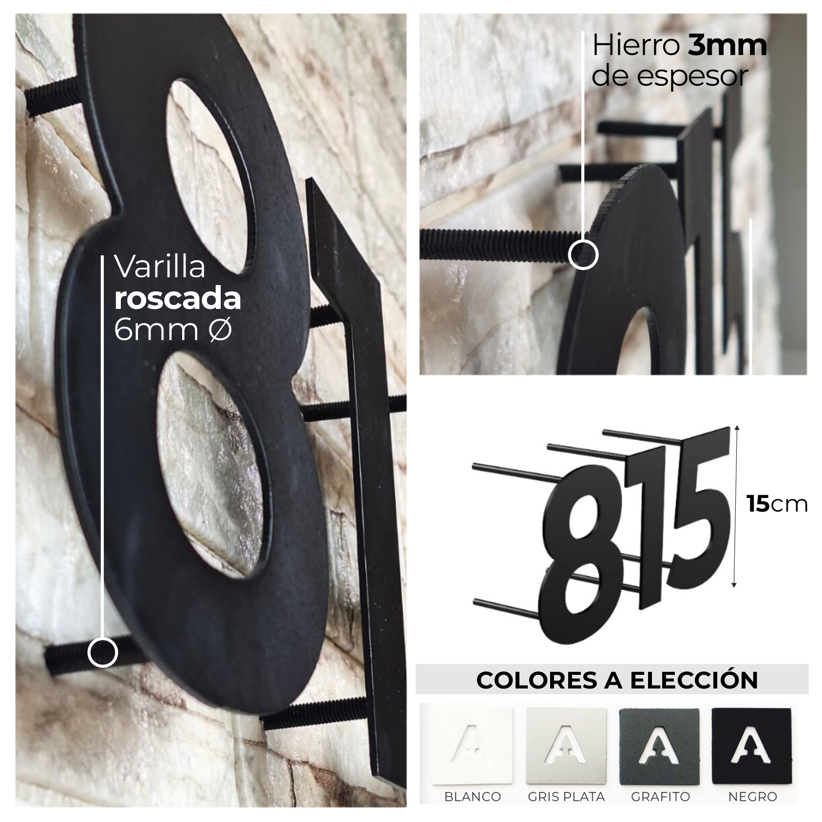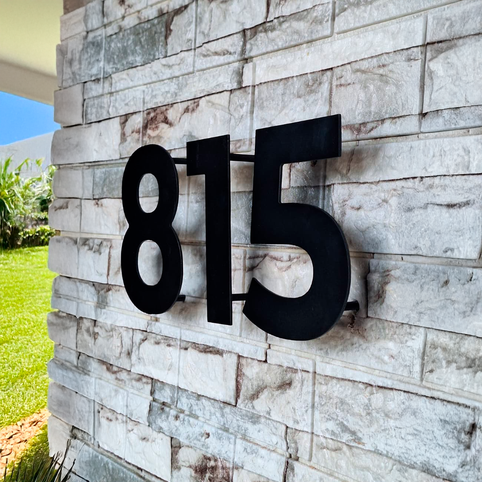 Estos números corpóreos están fabricados en hierro resistente de 3mm de grosor, con un diseño moderno y sobrio, ideales para colocar en fachadas, muros de entrada o portones