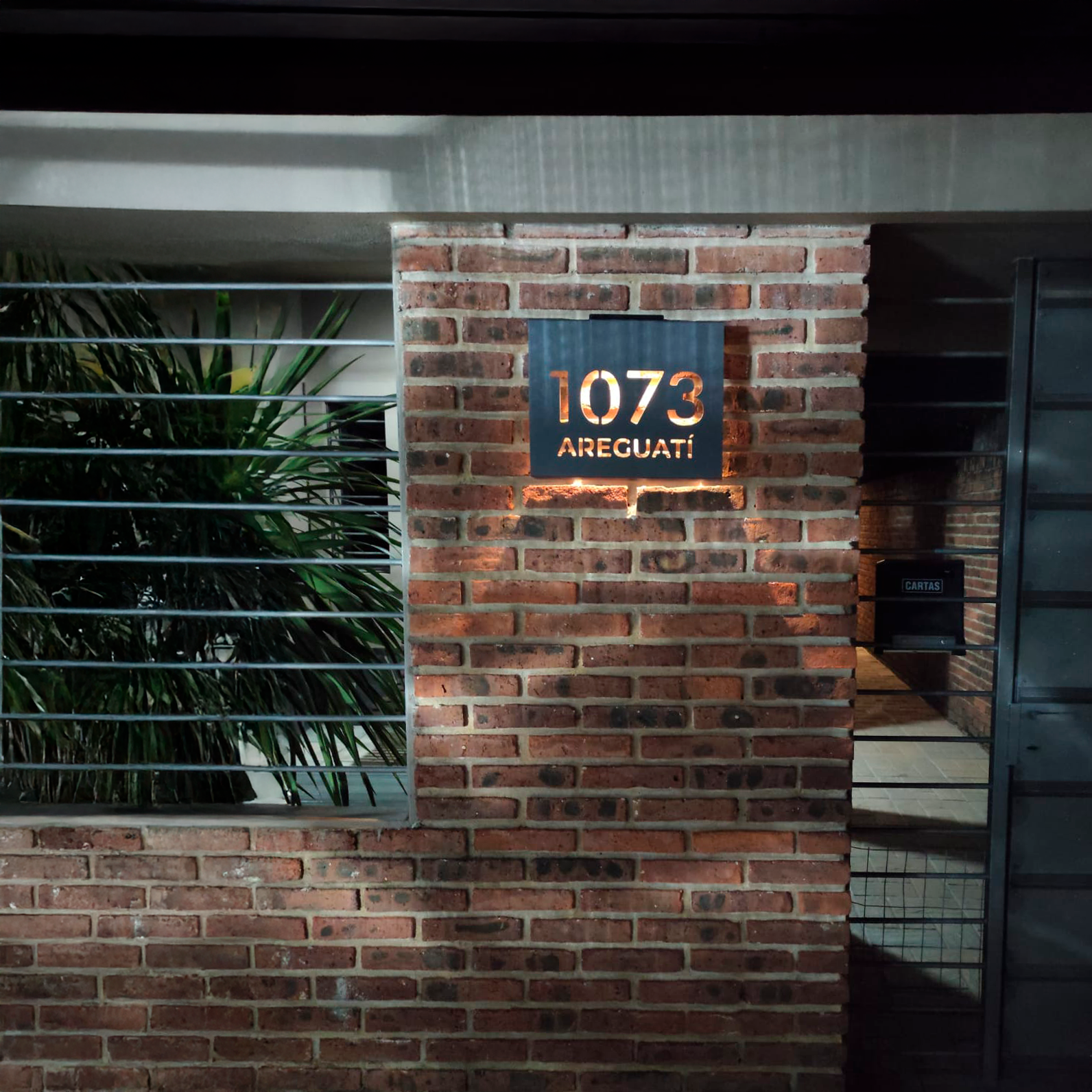 - Diseño personalizado: con tu número de puerta y nombre de calle calado.