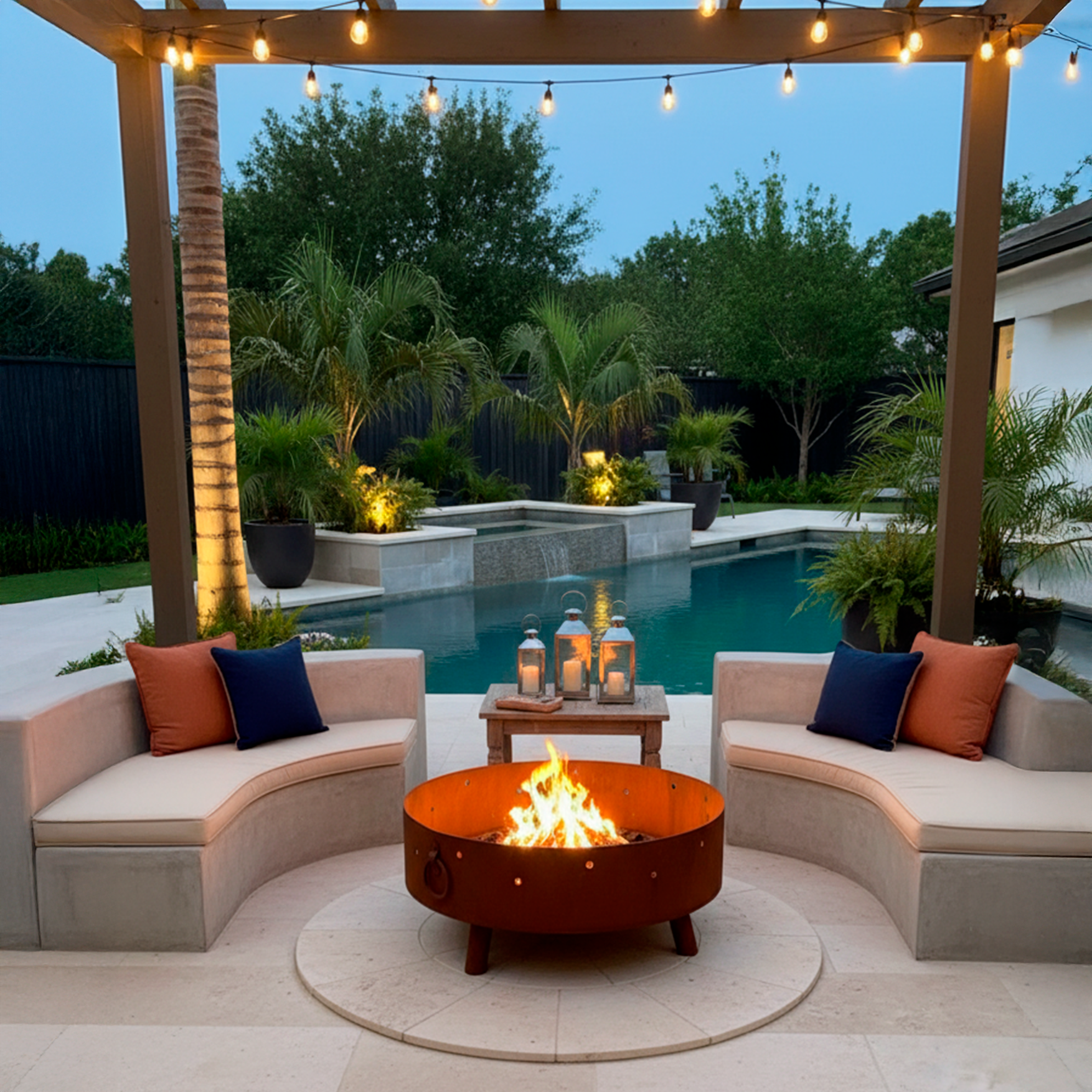 El modelo VULCANO es pura potencia visual y funcional. Inspirado en la fuerza de la naturaleza, este fogón redondo de bordes altos es ideal para reunir, calentar y disfrutar de grandes momentos en exteriores.